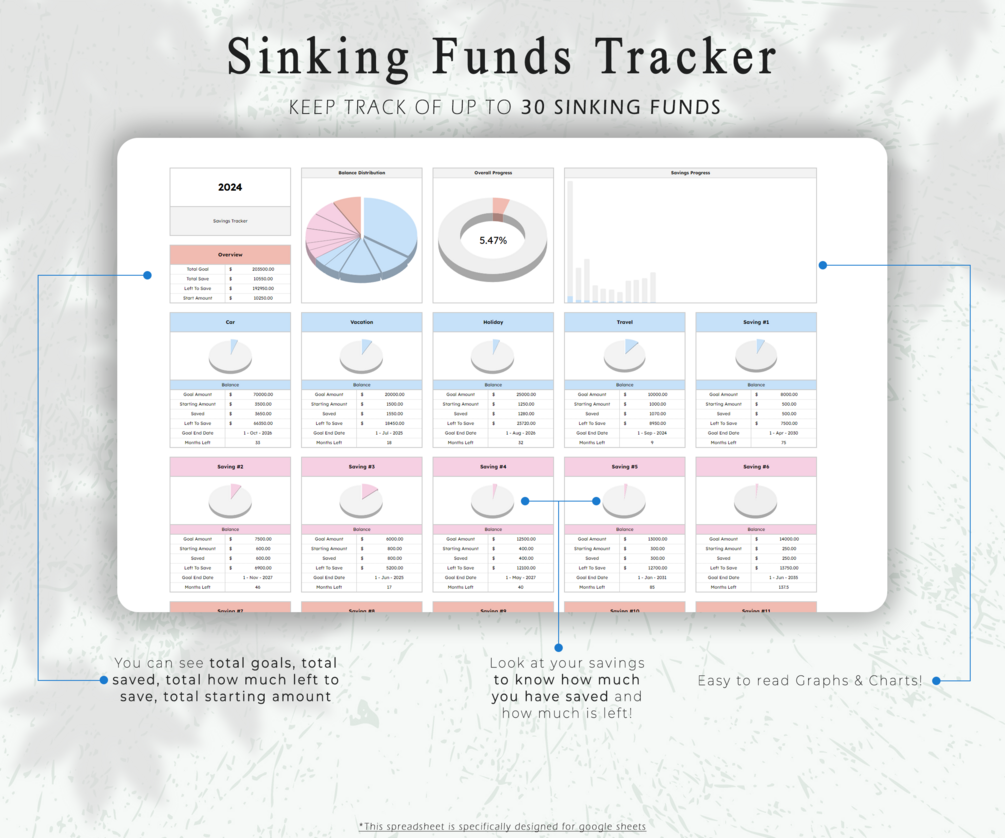 • A sinking funds dashboard to set goals for your sinking funds and see exactly how much you have saved and still have left to save